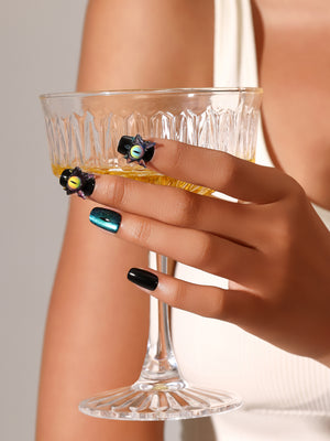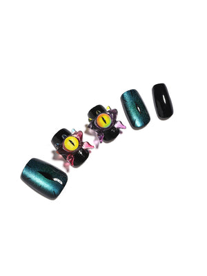 Square Ombre Cat Eye Press-On Nails – Peach, Blue & Candy (30-Piece Set)