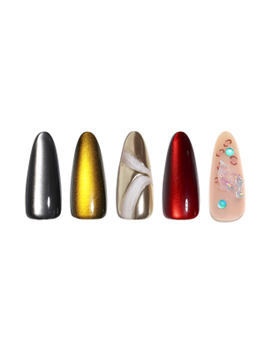 Get more looks for less with our Stiletto Press-On Nail Bundle. This value set includes 5 full press-on nail sets in stiletto shape, for a total of 150 premium acrylic nails (30 nails per theme).